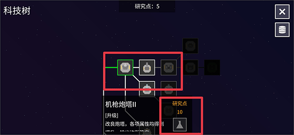 4、最后成功胜利后会解锁新的科技,在科技树界面中你可以使用研究点研究新的技术,并使用新的技术去完成更多挑战