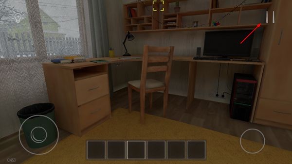 进入游戏,您会看到如上述所说的横版画面。左边的轮盘负责控制角色的移动,通过灵活滑动,您可以让角色在房间内自由穿梭;右边的操作区域则能调整方向,还能控制角色站起或者蹲下,这在躲避父母视线时会起到关键作用。