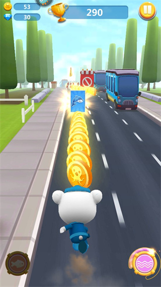 3、开始跑酷,拾取道路上的金币。