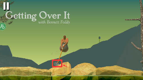 4、下面会有一些大石头,需要我们勾住石头的棱,在第一块大石头的时候,要慢一点,在腾空的时候,就需要快速的勾住上面的另一块石头。
