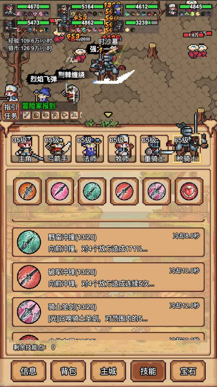 像素冒险村是一款内容比较经典的角色扮演游戏,在其中具有六个不同的职业可以选择,玩家可以根据搭配打造出强大的阵容,在这里更好的进行战斗,感受独特的冒险体验。其中的内容主要采用放置形式进行呈现,非常轻松就可以在不同的副本中进行挑战,让你感受独特的游戏乐趣,玩家还可以使用道具对自己的角色进行提升,在其中获取到强大的能力,更好的开始进行挑战,在不同的地图场景中进行探索,解锁更多的内容。