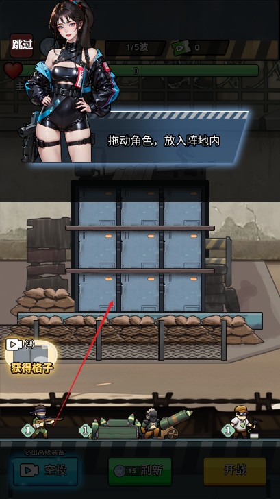 3、玩家需要将角色放入到格子中,初始的格子为9格,后续可以增加格子。