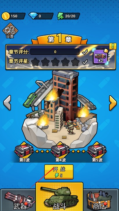战场战争是一款放置射击的塔防游戏。玩家将在各种各样的战场上体验到刺激的战斗。在这些战场上,武器合成是提升实力的重要方式。游戏的核心玩法就是围绕着武器的合成和升级展开,玩家可以把两个相同等级的武器合成在一起,打造出更强大的新武器。武器分为1级到4级,每次升级都会大幅提高它们的性能,让你在战斗中更加有优势。