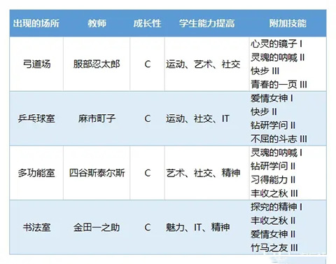 首先了解一下老师出现的场所、成长性、学生能力提高以及附加技能。