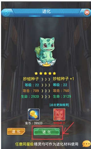 4、精灵进化需要吞噬一张相同星级的精灵卡和大量的金币