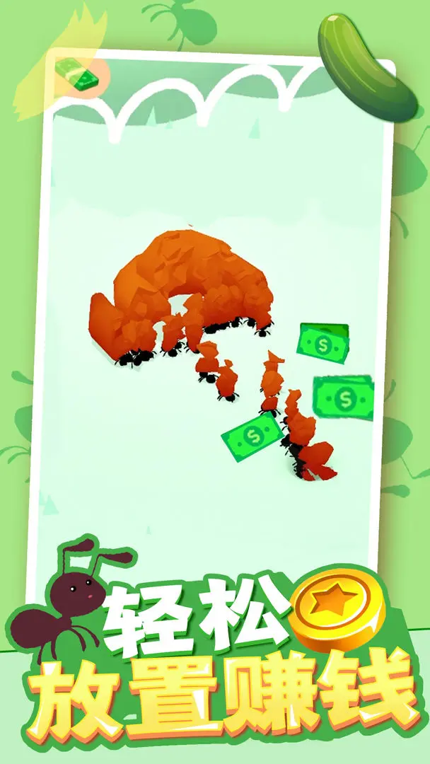 玩家将在这里对蚁群进行经营,游戏中的内容非常的有趣,支持运用策略在这里合理进行规划,智慧其中的蚂蚁不断吞噬更多的内容,在这里获取到更多的奖励。游戏中的内容采用卡通风格呈现,多种内容可以选择。