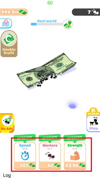 2、指挥你的蚂蚁大军吞噬眼前的一切,从而赢得可用于奖励的硬币。