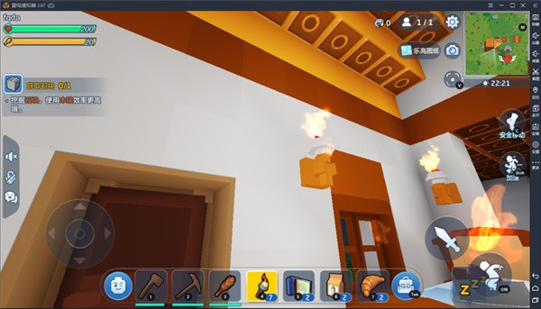 接着拿火把插墙上照亮,要知道,晚上在黑暗区域会刷新怪物,如果没有火把照亮,你的家里会凭空出现很多怪物来攻击你。