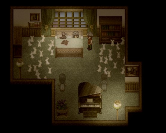 他们通过约翰提供的折纸兔子向前跃进,房间中央老约翰正在钢琴前弹着故事开头的那首曲子,正是他将曲子教给了保姆的孩子们。房间被纸兔子填满,这里同样还有鸭嘴兽玩偶,它们安静地欣赏着这场迷你的音乐会,随后约翰开始在房间里来回踱步,看上去寂寞异常。博士们收集好碎片后,通过一把雨伞跃进。