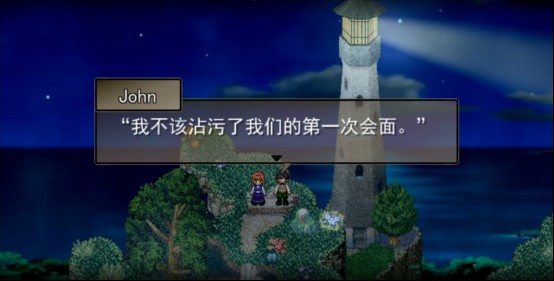 时间推进到约翰的中年时期,他与莉娃来到破败的灯塔前,灯塔废弃的告示成了两人长期以来的心结。面对难以割舍灯塔的莉娃,约翰有了一个提议,在灯塔边建造属于他们的房子,还没等到他完全解释计划,莉娃就兴奋地替他补充完剩下的话,扑到约翰怀里,完全不像刚才泰德提到的内向的样子。