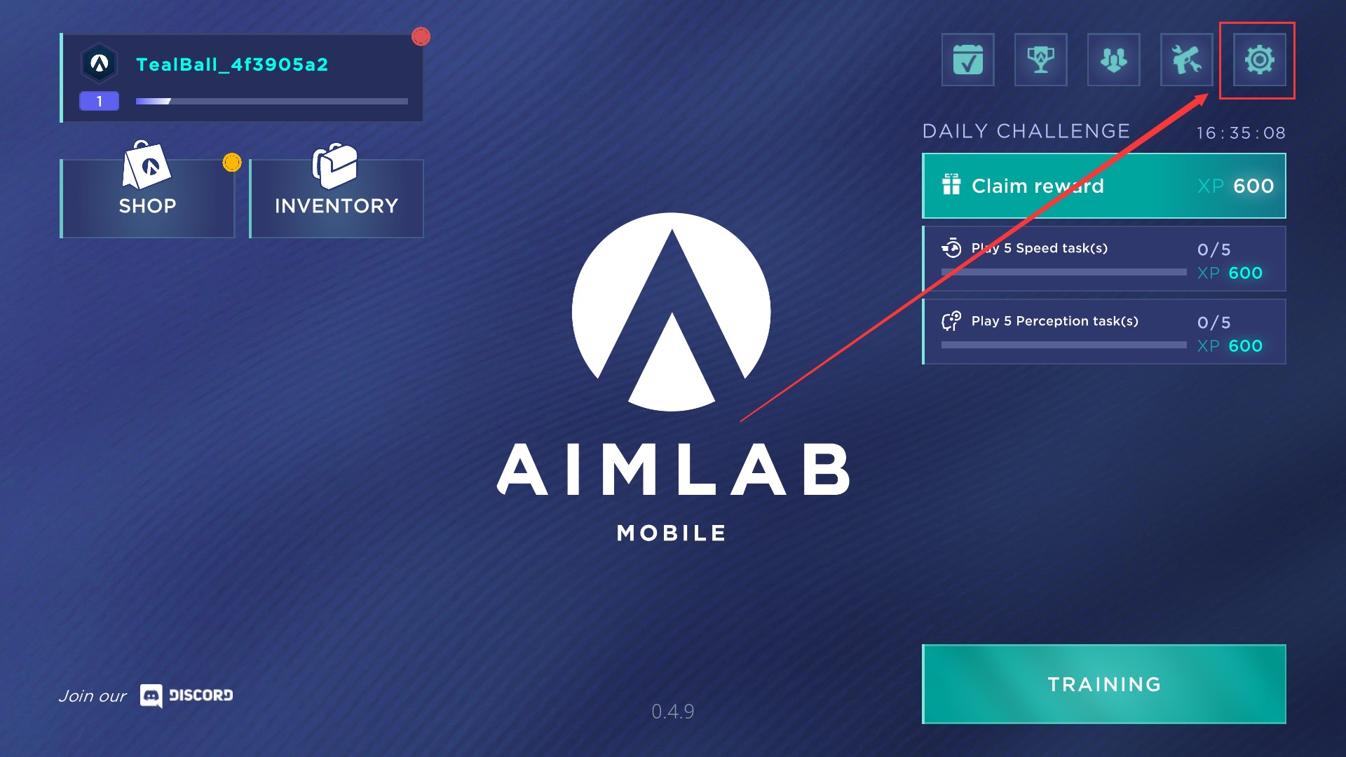 3、过完新手教程后点击右上角设置按钮进入设置