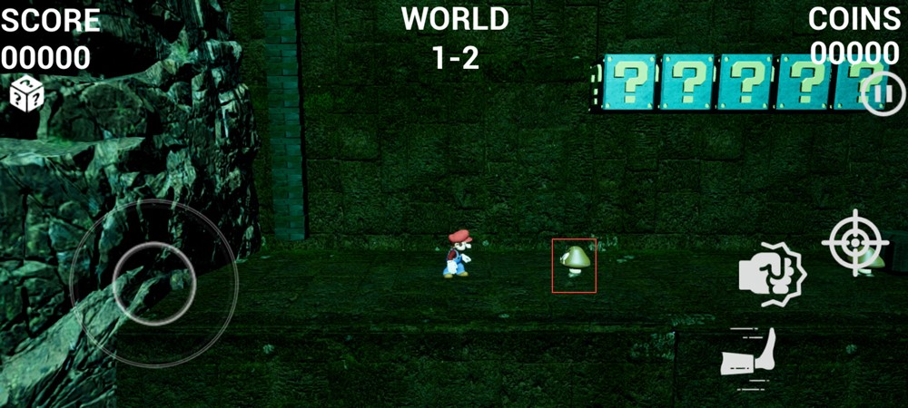 1、进入超级马里奥3d世界游戏后,左边是控制方向按钮,而右边则是攻击和瞄准