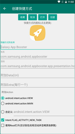 5、这里就可以设置快捷方式的名称、包名、活动等各项内容。