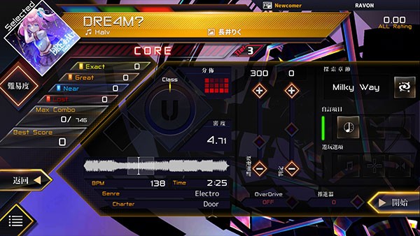 4、在画面的左边是歌曲的播放速度和OverDrive剩余能量,右边则是NOVA当前状态;