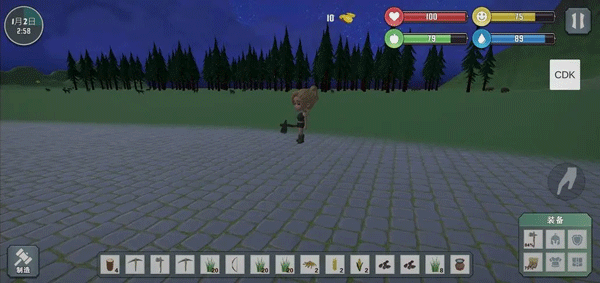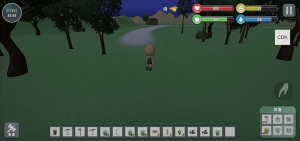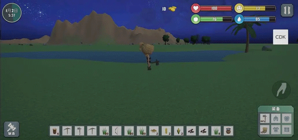 2、捡几个草堆,然后拿上斧头砍一棵树,做绳子和鞋子,鞋子可以加快移动速度,人手必备。