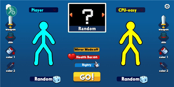 1、简约卡通的画风,经典火柴人格斗类游戏。