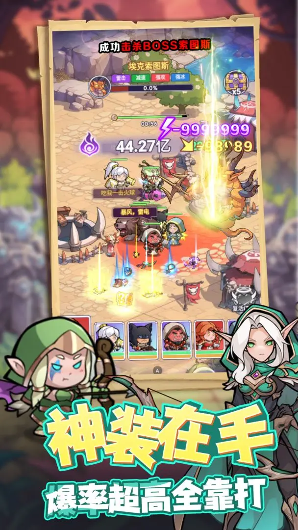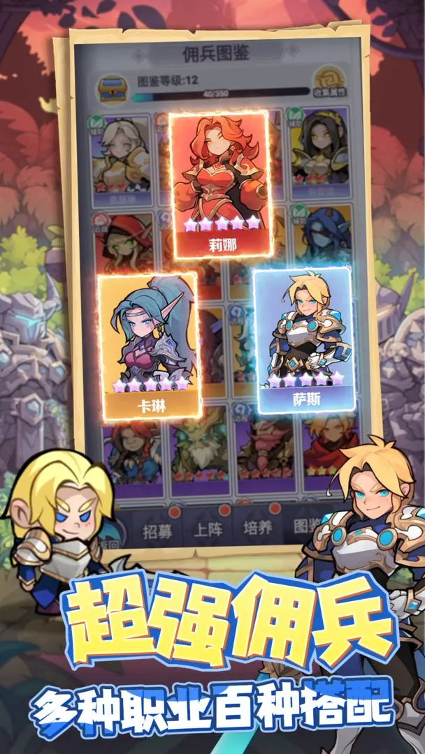 在佣兵的选择上其实没什么好纠结的,我们什么品质高就带什么,因为前期没什么好佣兵,我们要熬一个S+出来也需要一定的周期,在这里申请一下提高爆率,氪佬们可以无视周期。当然玩到后面主角容易死的话,咱们可以考虑带一下奶妈,游戏本质上是一个和时间赛跑,打boss有一分钟时间限制,所以我们要在这一分钟内尽量提高伤害。(希望官方能够加一下爆率)