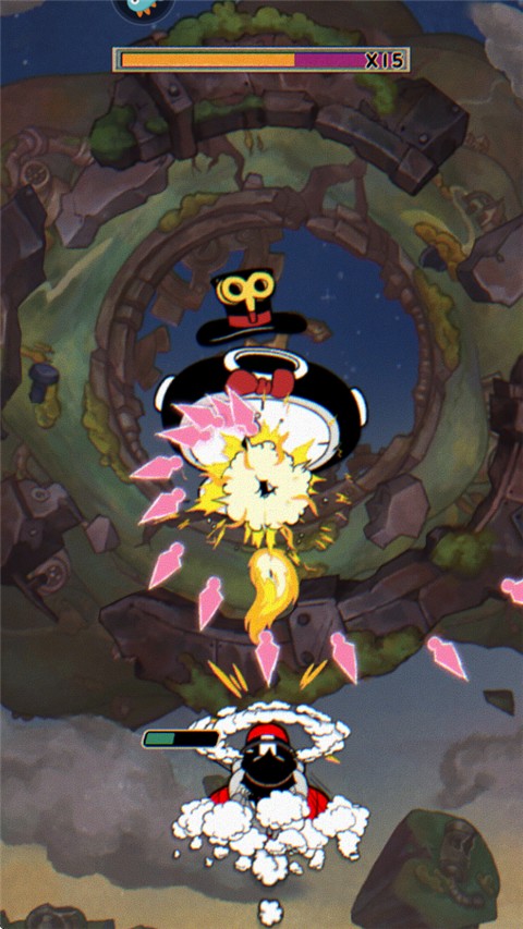 1、Boss战节奏紧凑,各种造型夸张的敌人轮番登场,高空乱斗、弹幕狂潮。