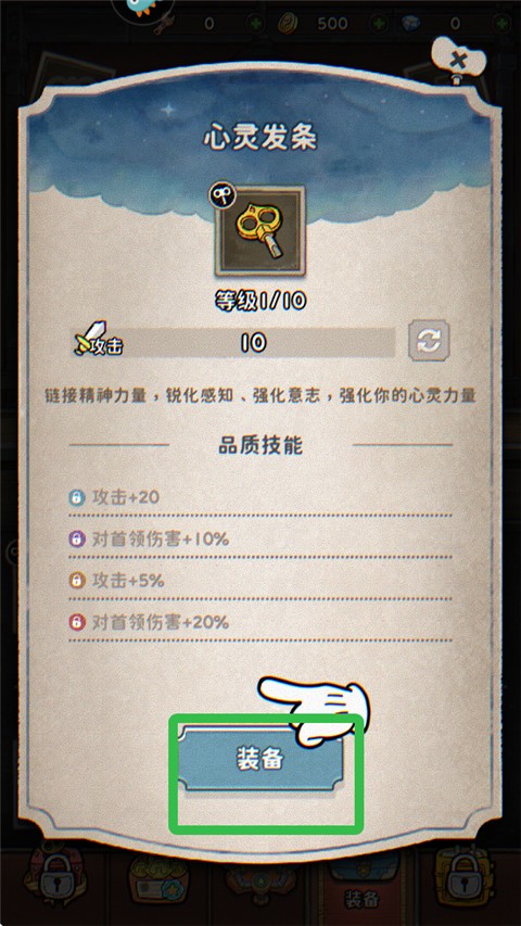 6、战斗中获得了一个心灵发条,点击装备上。