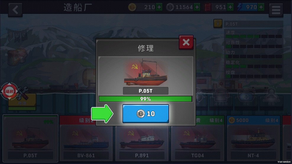 3、从经典拖船到著名舰艇,探索整个船队,并用所获资金为您的船只进行补给和升级。