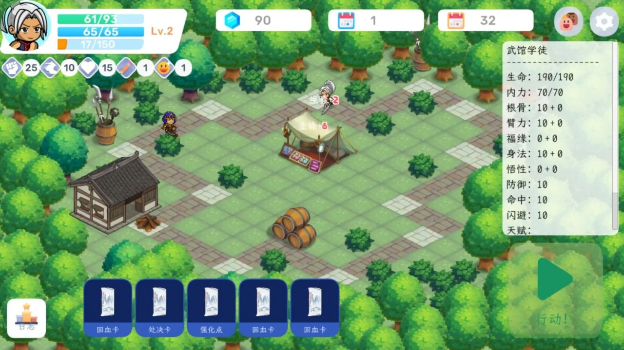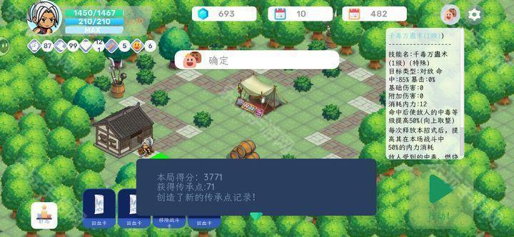用了10个传承点通关简单难度(选奇门启程+增加生命1+最大生命值15+最大内力值20,说实话传承点低的简单难度还是挺看运气的,推荐点数多了再选上天赋异禀和深思熟虑,体验会好不少),奇门启程技能选择饮毒+五毒鞭法+毒蚀倍增。