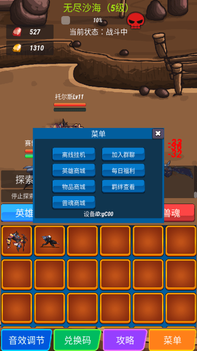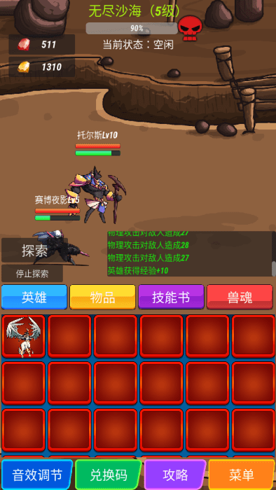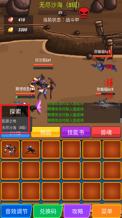 你可以点击探索按键,选择无尽沙海挂机战斗。