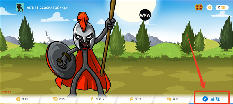 1、点击游戏主界面右下方的【游玩】按钮,选择【对战】。