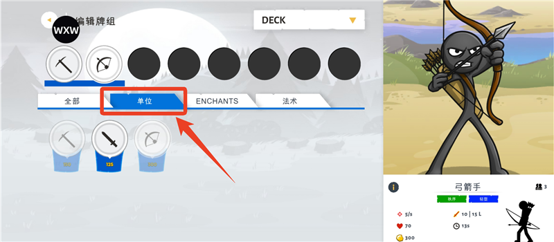 第三关:剑士关卡,前期养6个矿工,剑士来了就驻守,经济上来了优先养弓箭手(3个起步)