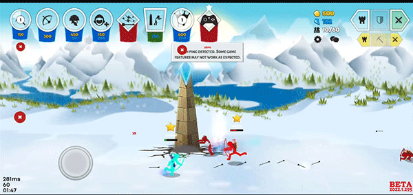2、开采黄金,学习剑术、枪矛,训练弓箭手、法师,甚至巨人,以此来摧毁敌人的雕像,占领所有的领土。