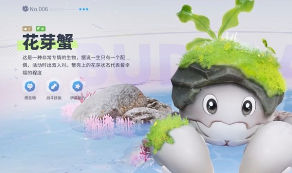 花芽蟹是一种非常专情的生物,据说一生只有一个配偶,活动时总是成双成对。蟹壳上花芽的状态反映了它们的幸福程度。