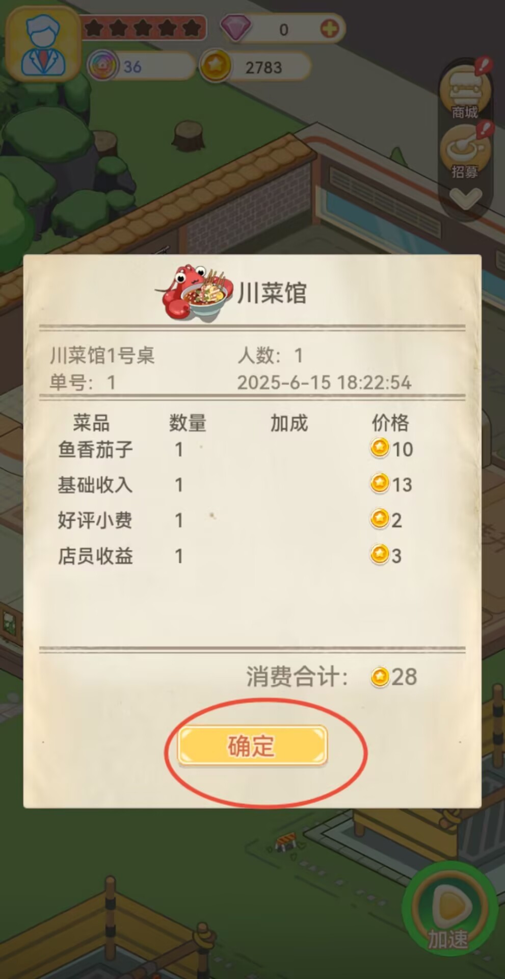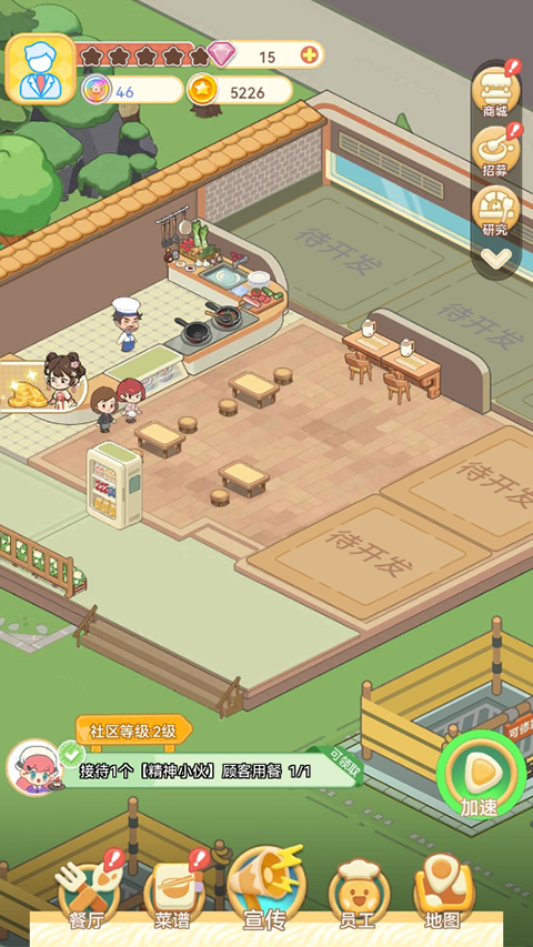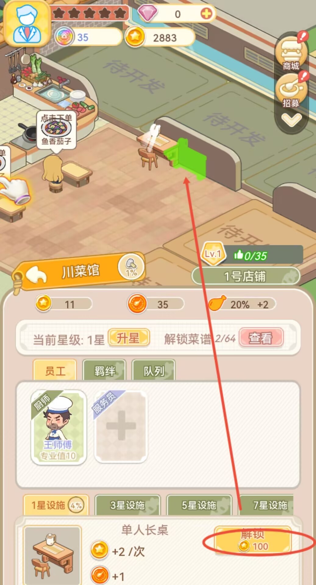 3、招聘、培训员工,并通过烹饪经验提升等级,解锁新技能和特殊菜谱。