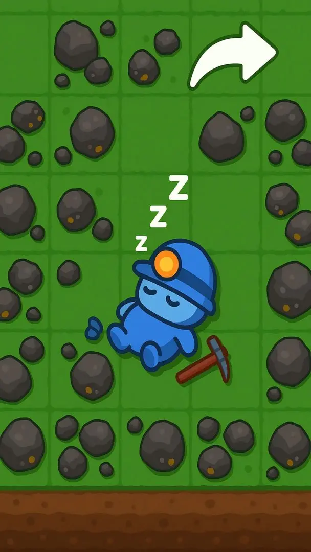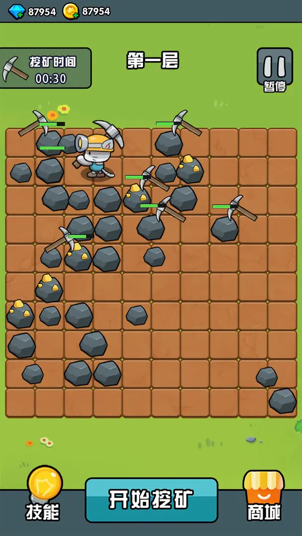 1、玩家通过手指按压并滑动屏幕的方式模拟真实挖矿动作,逐步清除泥土与岩层。