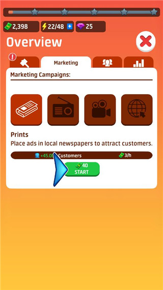 1、化身为一位餐厅经理,精心经营自己的餐饮事业,提供美味佳肴与服务从而实现丰厚的利润回报。