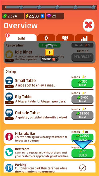 探索在此模拟器中进行投资并赚取尽可能多现金的管理策略-在线和离线均可!升级以打开新的厨房故事
