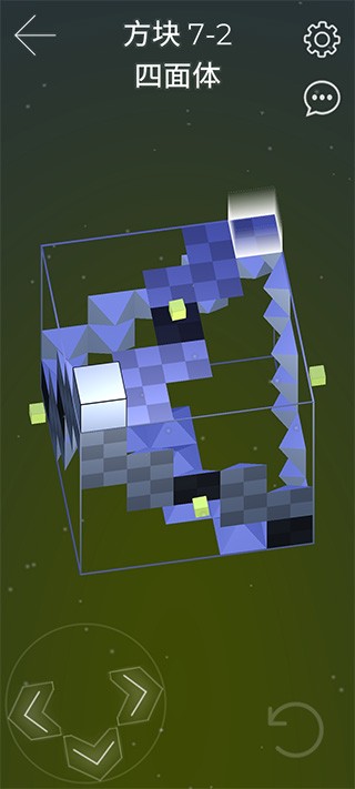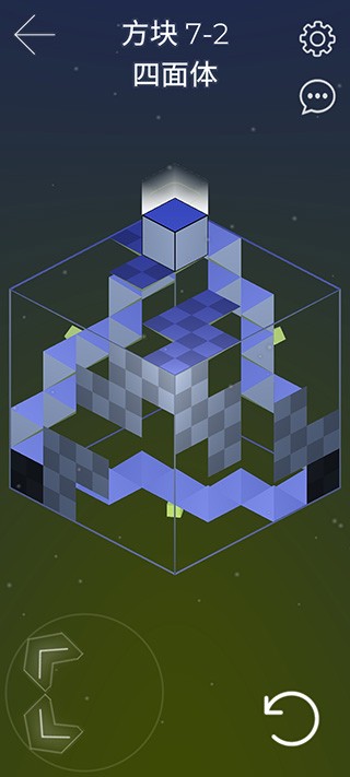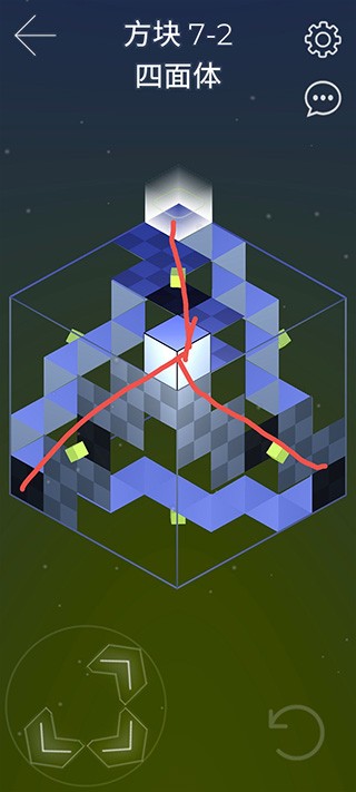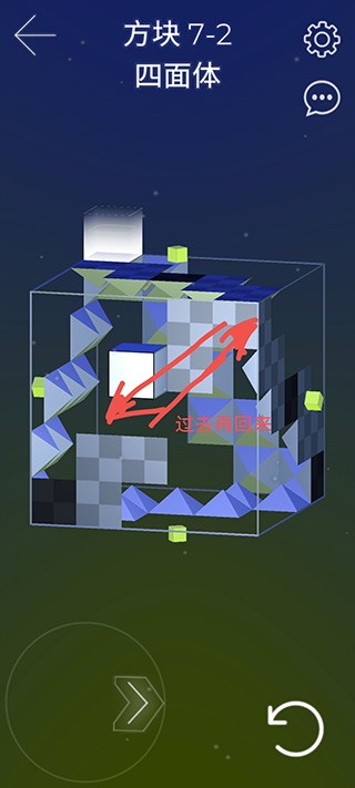 观察可知,7-2关的正方体每一个面都有通道,而且都处于对角线的位置,由于黑地板(踩一次就会消失)的存在,每条对角线只能过去一次。