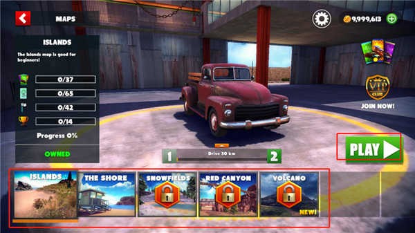 1、打开在本站下载的脱离道路无限金币版游戏,进入游戏首页,选择你想要的游戏场景,点击开始游戏;