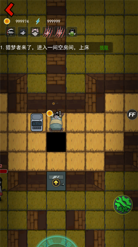 5、在睡觉的时候玩家们可产生金币,通过金币玩家们可升级门、床、以及装备武器;