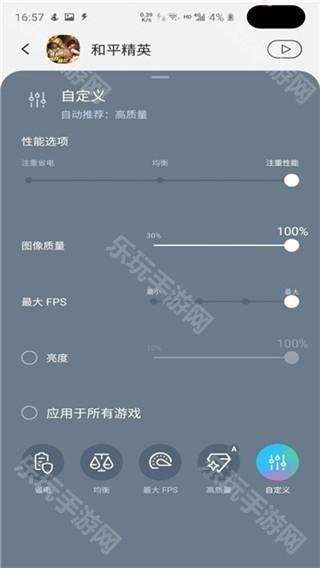 6、最后看到有是游戏加速器增强版,他可以自定义每一个游戏分配的性能。可以是高质量高画质,可以选择是帧数优先或者是省电优先,这样就可以更好的控制手机性能分配从而节省手机的电量。