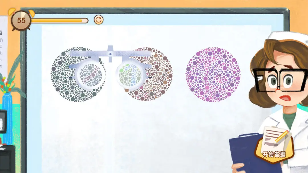3、黄斑病变模拟会遮蔽画面中央区域,迫使玩家训练非中心视觉的观察能力,并据此完成空间定位与图形拼接类任务。