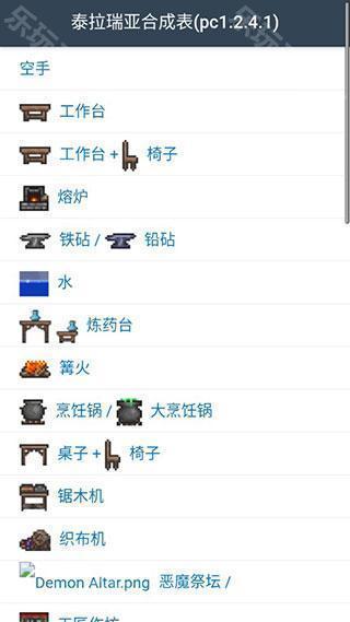 泰拉瑞亚合成表是一款专为同名游戏玩家打造的一款道具合成辅助软件,使用这个软件你可以尽情的和合成包括药水、火把、武器、翅膀、燃烧箭在内的多种道具,而且还能查看详细的合成信息,让你可以有计划的收集相关道具来和合成想要的物品。这个软件覆盖的合成表非常的丰富,无论是手机端的还是PC端的都可以在这里找到,满足所有玩家的不同使用需求,软件的UI非常的简洁,操作也很简单,但是功能非常的强大,感兴趣的快来下载。