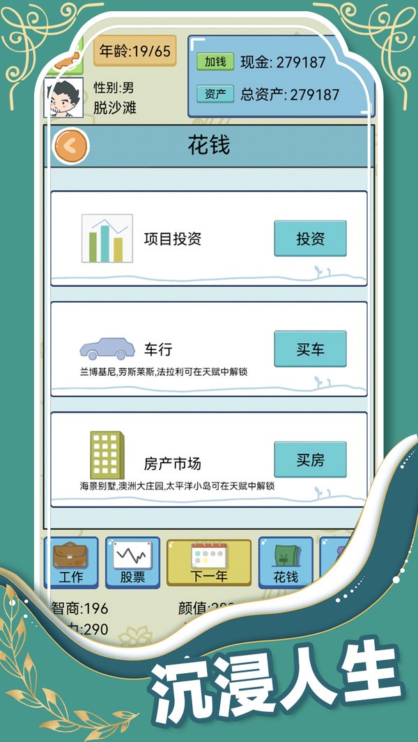 人生模拟器中国式人生折相思版在这里你可以选择自己的生活方式,努力学习做一个学霸,或是投入股市做个股坛奇才,又或是找份工作,和伴侣过平平淡淡的一生。