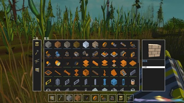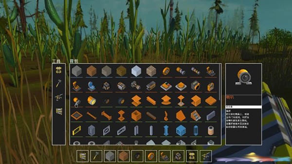这些方块是最普通的建筑原件,原料可以是石头、木头、塑料或金属,通过简单的拖动就可以批量创造,十分适合建筑速度与舒适兼顾的大型结构。可以通过按住鼠标右键拖动删除。方块在物品栏中以蓝色线表示。