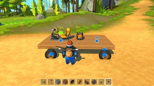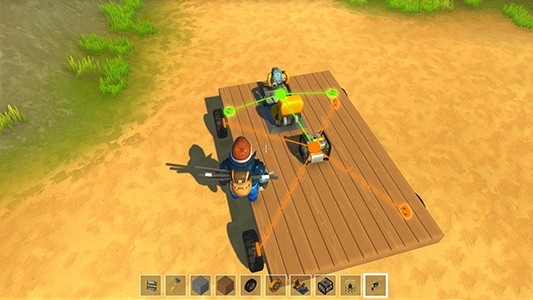 可互动部件:所有的可互动部件都有特殊功能,可以让你的作品移动、旋转甚至飞翔,它可以是从燃气引擎到全能收音机的任何东西,在物品栏中用橙色线表示。