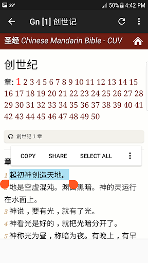 2、收录的各个版本不同翻译的圣经原文,让用户能够仔细研读圣经来进行学习。