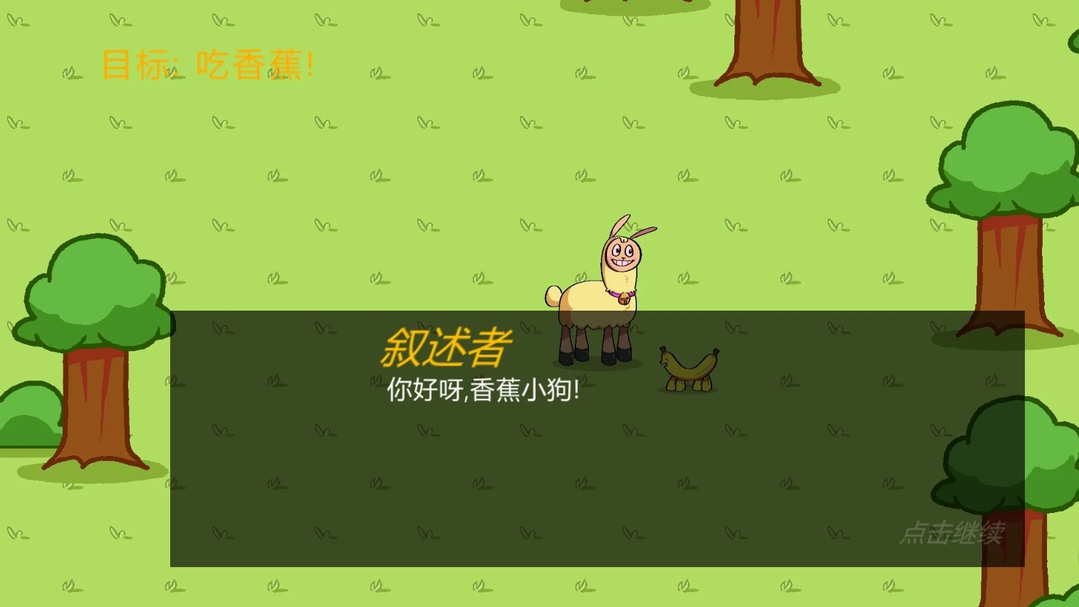 吃了樱桃后拉姆还是很饿,这个时候我们正巧看见一只可爱的香蕉狗,这个时候我们就要和香蕉狗进行交流。