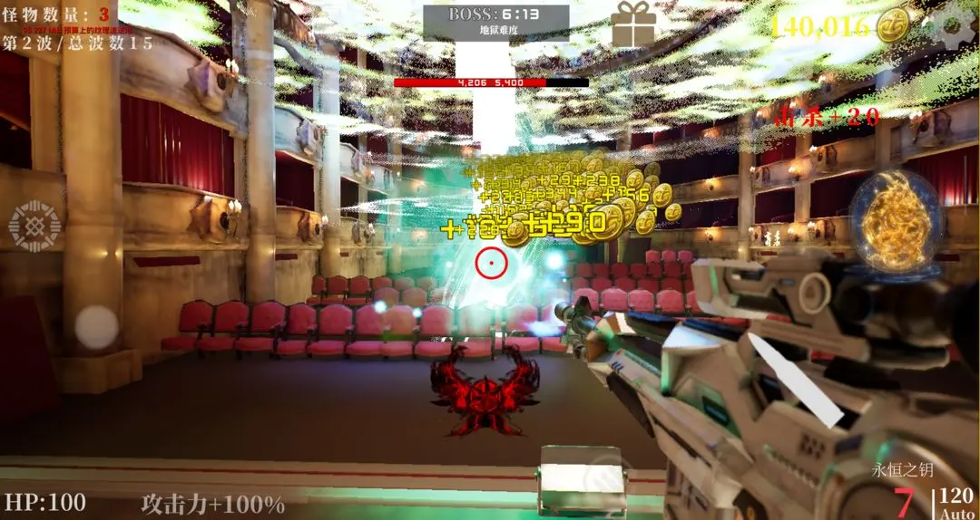 2、击杀僵尸后,拾取水晶让角色进行升级;
