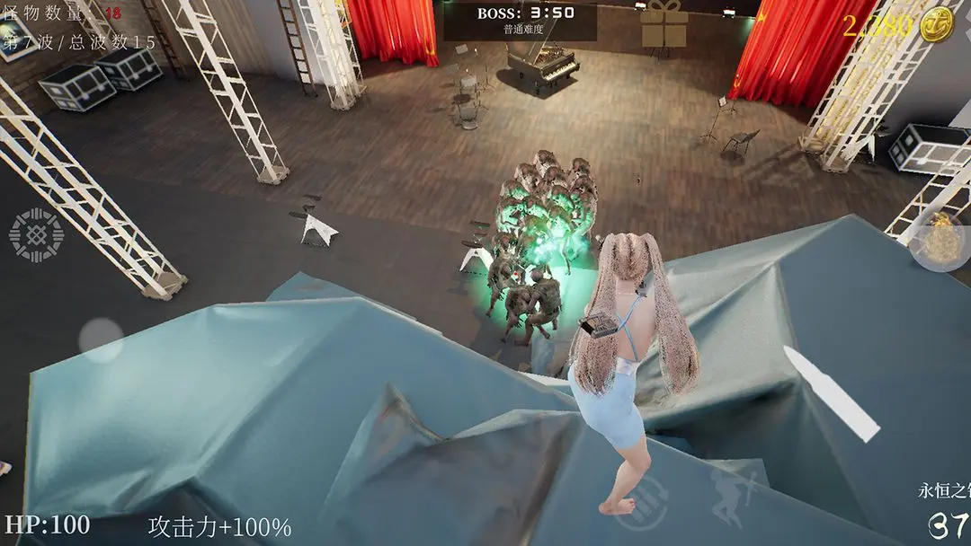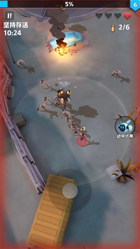 4、随着游戏的进行,僵尸会越来越多,需要通过合理的走位避开僵尸的攻击;
