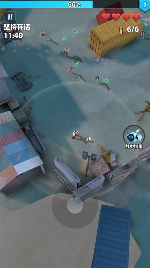 1、下载进入僵尸狂潮手游,首先我们通过滑动屏幕来控制角色移动;