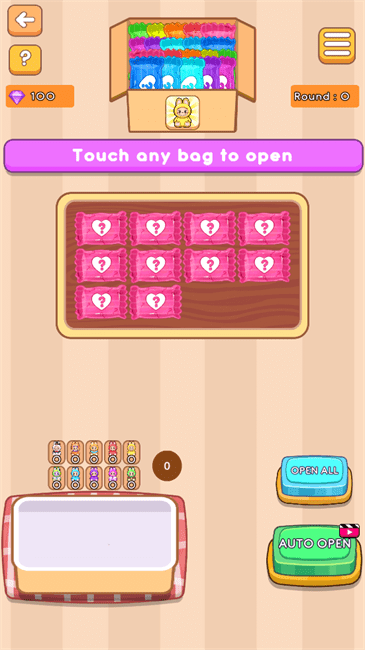 3、继续打开袋子,直到所有袋子都消失。