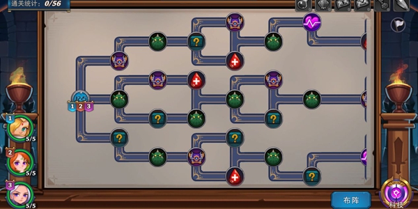 2、打之前,先确定下自己所拥有的佣兵,确保至少有2个肉(1队,2队至少得有一个前排肉)。在还没有牧师的情况下,1队2队保证是等级最高的主力,做到1肉4输出或者2肉3输出,按自己佣兵情况而定,3队可以放等级偏低的佣兵用来混奖励。(有能力的可以用来打小怪关卡,和第2关的精英关卡)